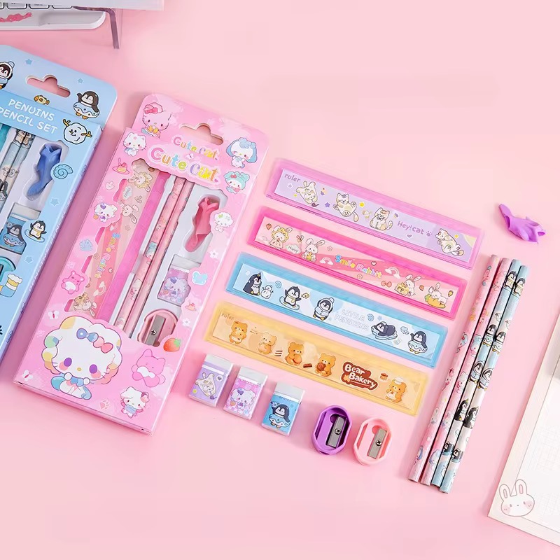 بكت الأدوات المدرسية 🧚🏻💐 يتكون من قلمين و ممحاة و برايه و مسطرة 📏✨ جودتهم جدا ممتازة 🌷